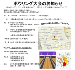 埼玉県障害者スポーツ協会より令和7年度彩の国ふれあいピック春季大会の開催案内がありました。