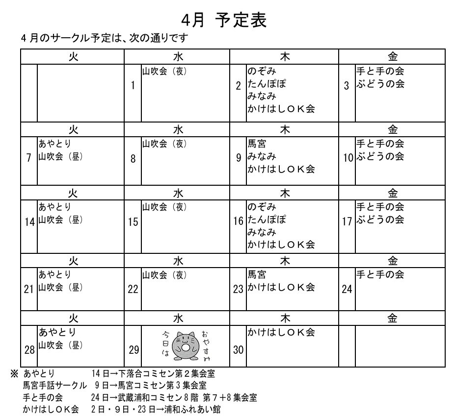 「手話ってどうやるの?」「手話を使ってみたい」などと、手話に興味のある方、手話の勉強をしてみたい方、すべてのサークルでは参加大歓迎です。